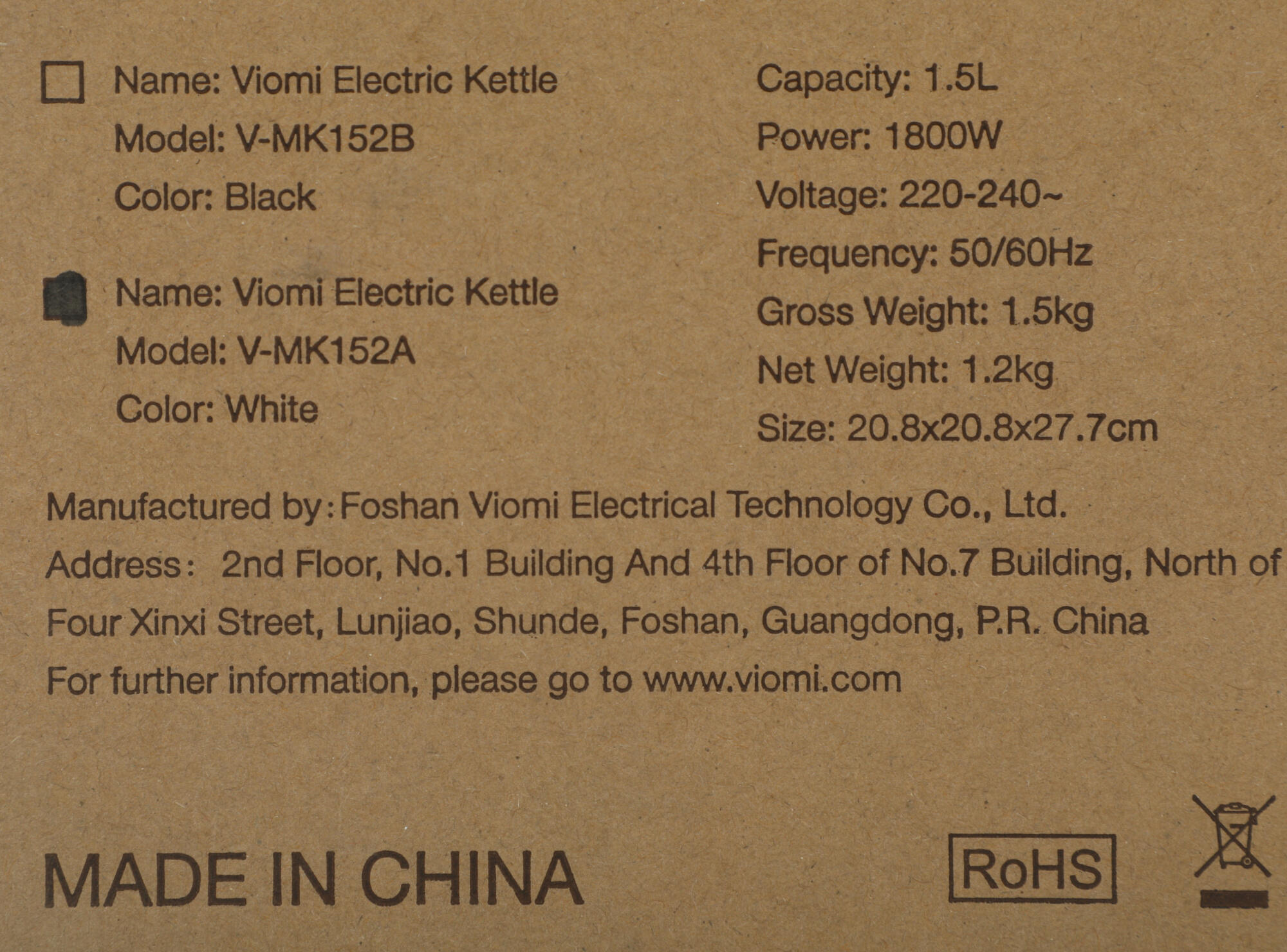 —Электрочайники и термопоты Viomi Mechanical Kettle V-MK152A [V-MK152A]