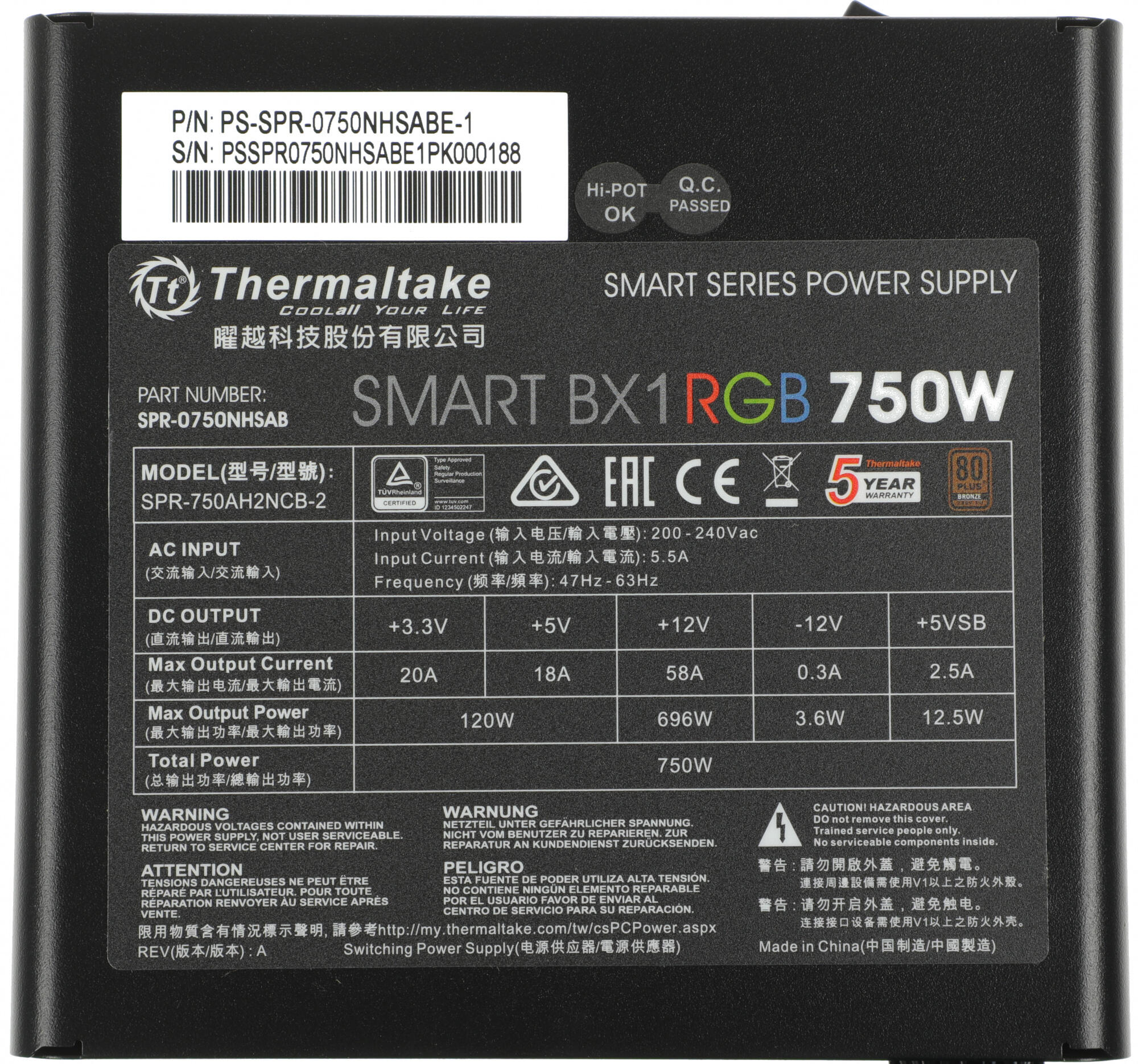 —Блоки питания Thermaltake Smart BX1 RGB 750W SP-750AH2NKB-2 [PS-SPR-0750NHSABE-1]