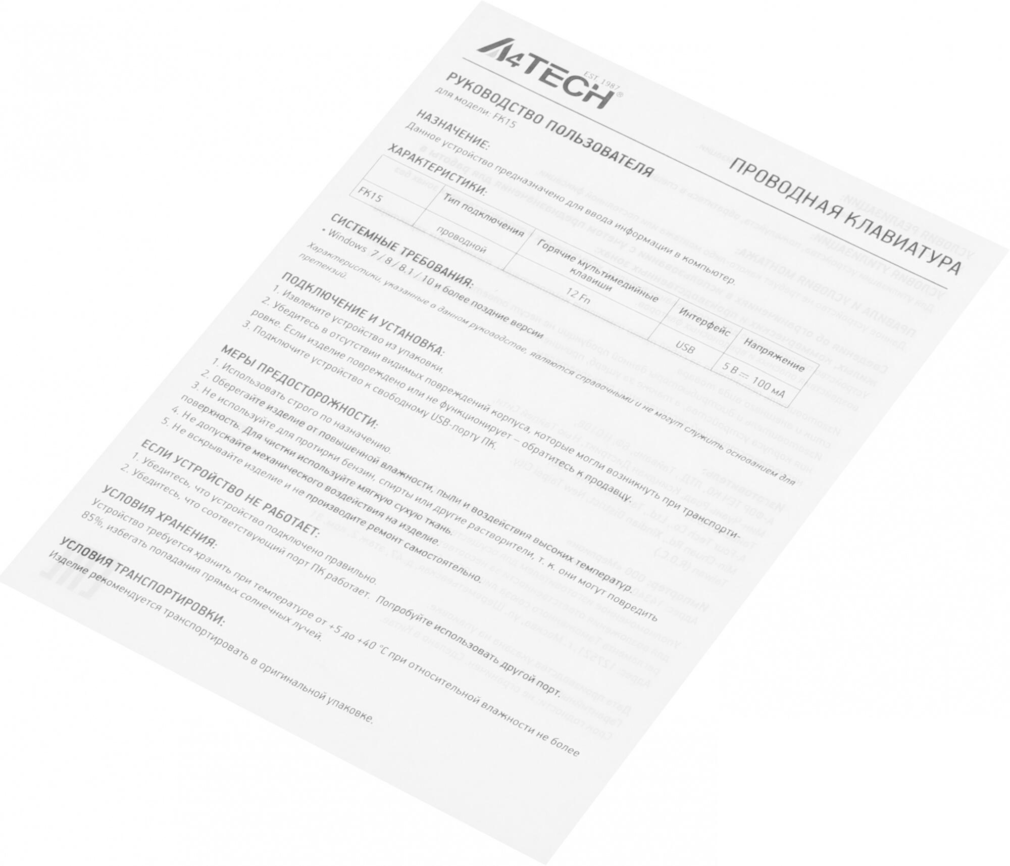 —Клавиатуры A4Tech Fstyler FK15 (белый)