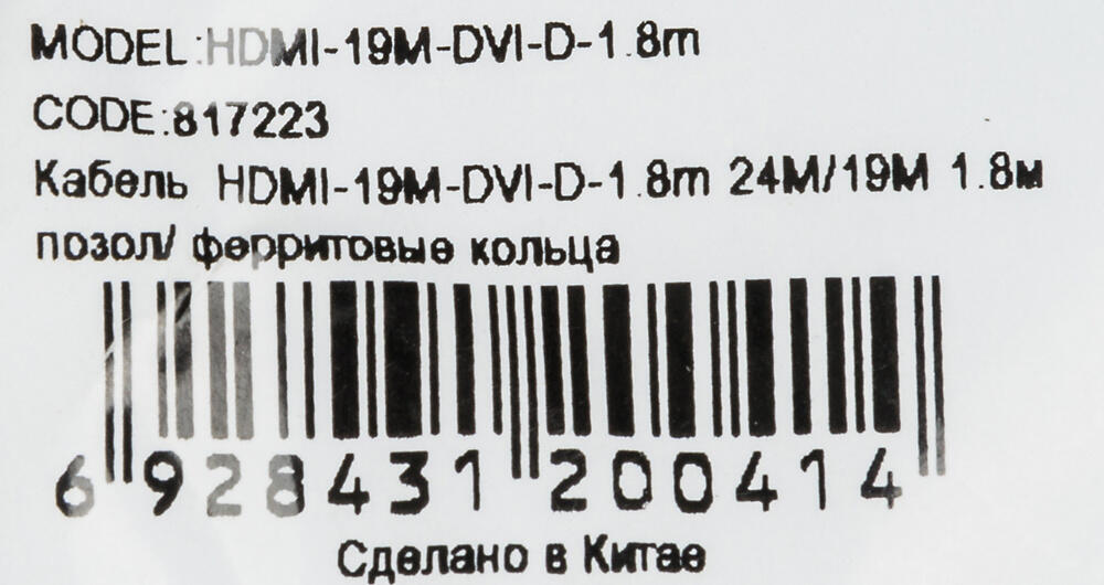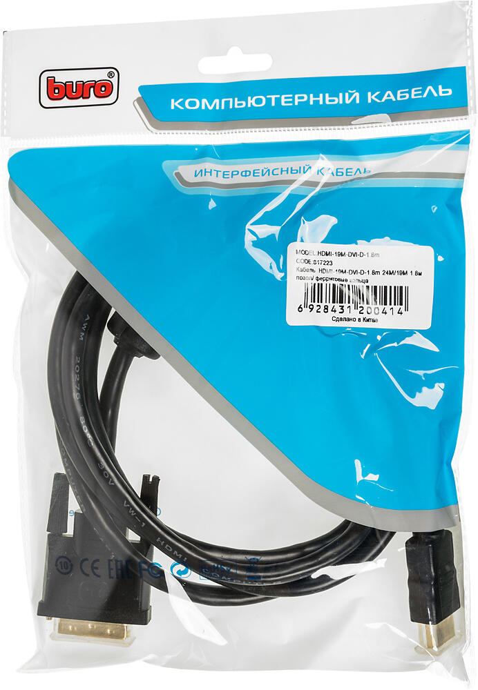 —Кабели, адаптеры, разветвители Buro HDMI-19M-DVI-D-1.8M